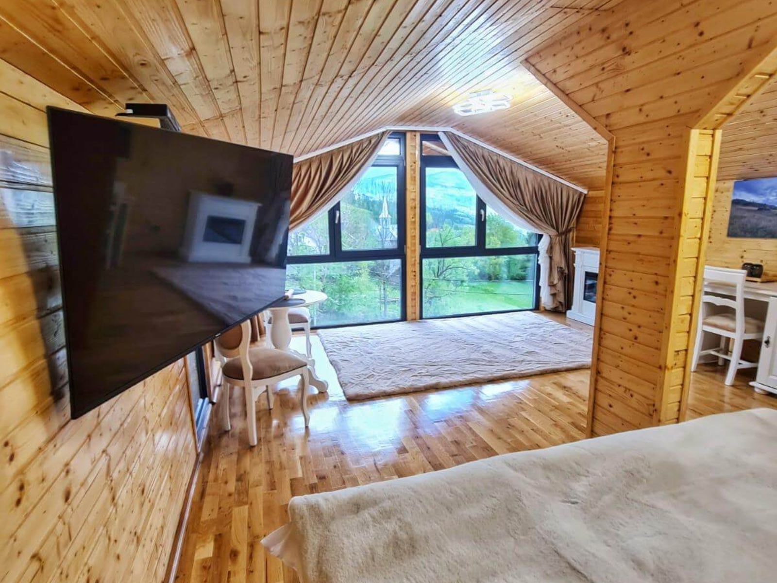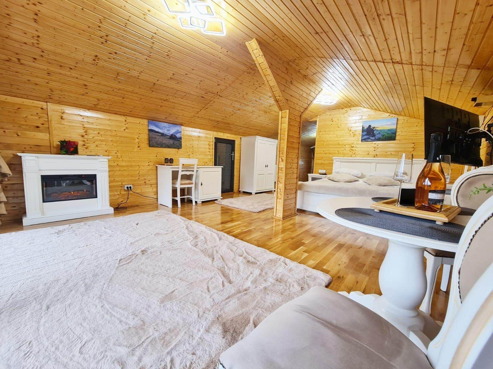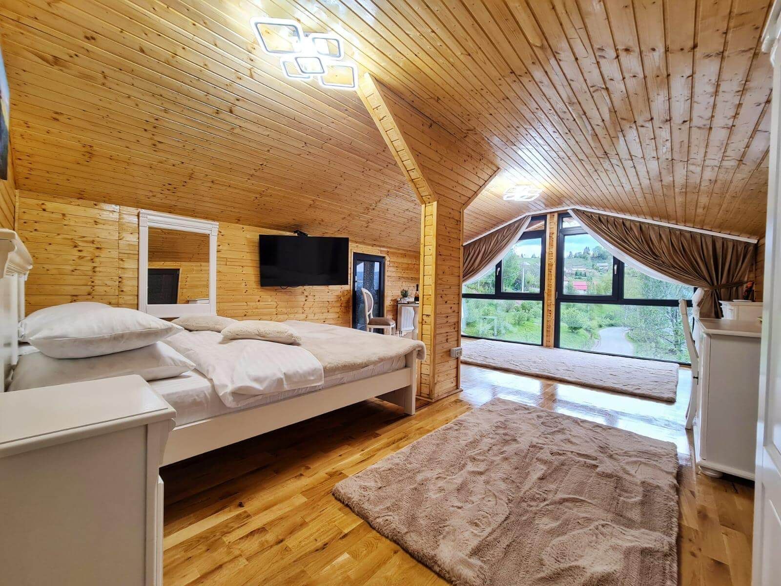 La mansardă, vă așteaptă o Cameră Panoramică elegantă, cu un pat king size matrimonial perfect pentru relaxare totală.